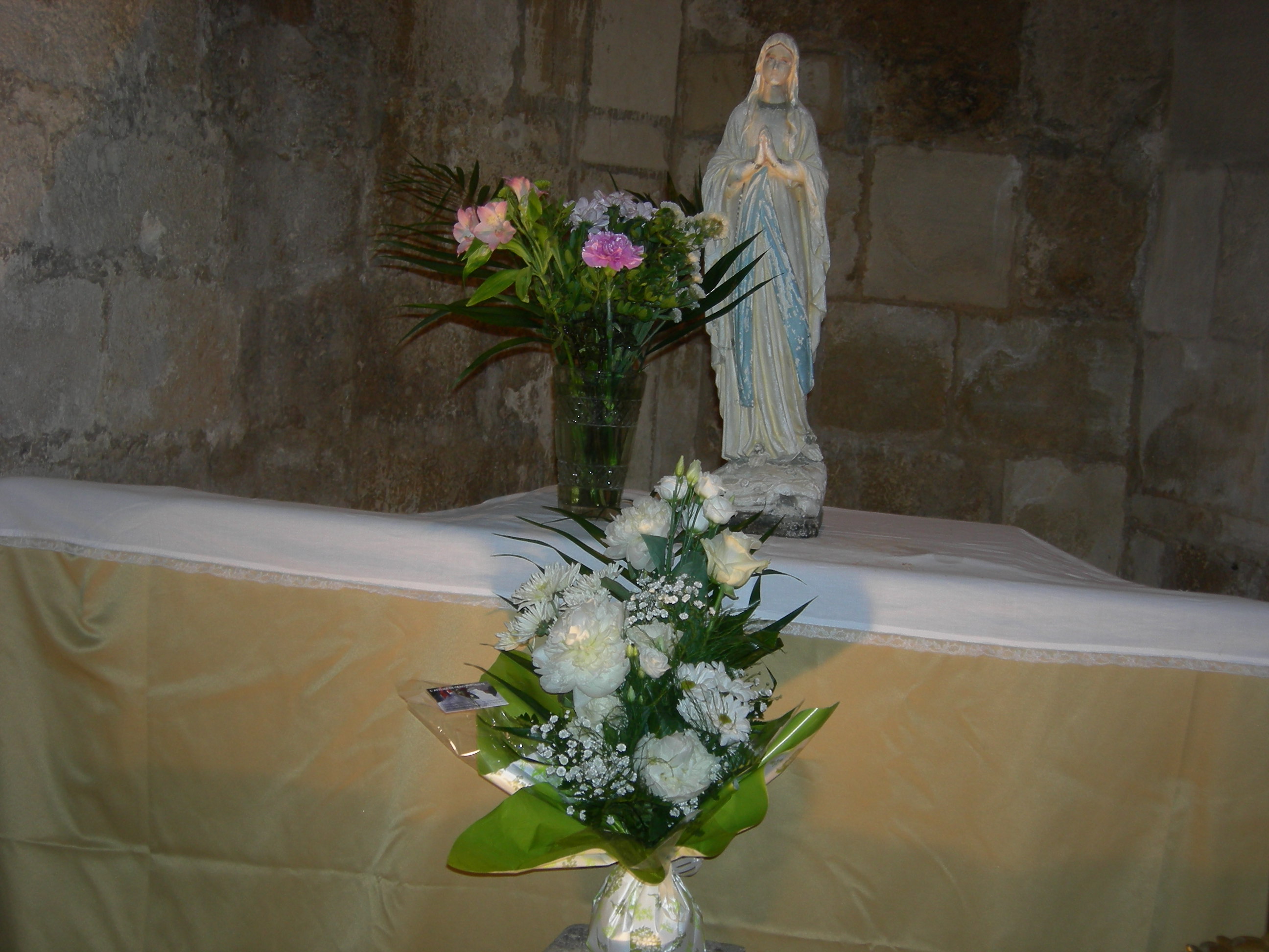 DANS LA NUIT DU DIMANCHE 27 AU LUNDI 28 MARS 2022 LE PLAFONT DE LA VOUTE DE LA CHAPELLE S 4 EFFONDRE ? ENTRAINANT LA DESTRUCTION DE LA STATUE ET DE VASE.